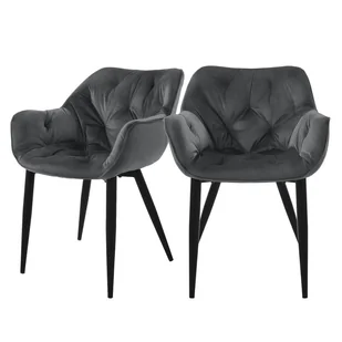Dane techniczne: Materiał okładki: aksamit Materiał ramy: metal Kolor osłony: antracyt Kolor ramki: czarny Wymiary (dł. x szer. x wys.): ok. 59 cm x 67 cm x 83 cm Wysokość siedziska: ok. 49 cm Głębokość siedziska: ok. 43 cm Wysokość oparcia: ok. 43 cm Szerokość oparcia: ok. 45 cm Maksymalne obciążenie statyczne: ok. 120 kg Waga zestawu 2 sztuk: ok. 16,5 kg (na krzesło ok. 8,25 kg)
