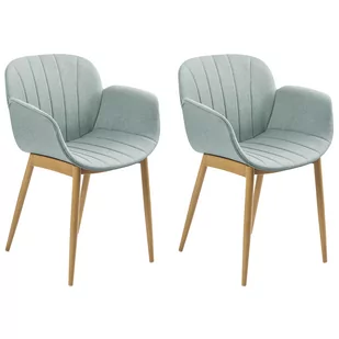 Tapicerowane krzesła obiadowe z podłokietnikami. Ten zestaw krzeseł do jadalni cechuje się mistrzowskim połączeniem stylu oraz wygody. Ich tapicerowanie wykonano z poliestru w miętowym kolorze, dzięki czemu produkty sprawdzą się w różnych stylach wnętrzarskich, od tych nowoczesnych po bardziej retro i vintage. Na oparciu i siedzisku znajduje się przyciągające uwagę pionowe pikowanie, a stylowy wygląd krzeseł podkreślają metalowe nóżki w ciepłym, drewnianym odcieniu. Wybierając te krzesła nie musisz się też martwić o częstą pielęgnacje - nawet bez codziennego czyszczenia, zestaw posłuży ci przez wiele lat.