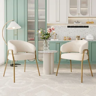 Zestaw 2 krzeseł do jadalni z aksamitu i metalu w kolorze złotym - białe - 61 x 48 x 78 cm