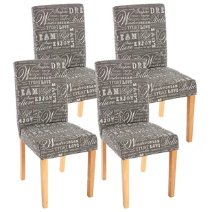 zestaw 4 krzeseł do jadalni Krzesło kuchenne Littau ~ tkanina z napisem, szary, jasne nogi