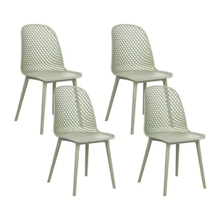Zestaw czterech krzeseł w stylu minimalistycznym. Odmień swoją jadalnię tym niepowtarzalnym zestawem 4 krzeseł. Wykonane one są z lekkiego materiału syntetycznego, idealnie łączą styl i wygodę. Oparcia zostały wykonane z dekoracyjnej siatki, co dodaje całości nowoczesnego charakteru. Szczegóły: Typ produktu: