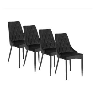 Zestaw 4x Krzesło Tapicerowane CORK Czarne – Elegancja i komfort w stylu glamour Krzesła tapicerowane CORK w głębokim czarnym kolorze to połączenie nowoczesnego szyku z nutą klasycznej elegancji. Ich aksamitna tapicerka, delikatne pikowania i wyrafinowana linia sprawiają, że są nie tylko wygodnym, ale również efektownym dodatkiem do każdego wnętrza. Doskonale sprawdzą się w jadalni, salonie czy eleganckim gabinecie. Czarna tkanina velvet pięknie współgra z malowanymi proszkowo stalowymi nogami, tworząc spójną i stylową całość. Wygodne siedzisko oraz miękkie oparcie wypełnione pianką zapewniają wysoki komfort nawet przy dłuższym użytkowaniu.