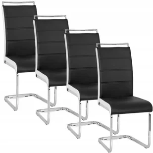 Zestaw 4 krzeseł LOCA – elegancja, komfort i nowoczesna forma Zestaw czterech krzeseł LOCA to doskonałe rozwiązanie dla osób ceniących sobie styl i wygodę w codziennym użytkowaniu. Ich nowoczesna sylwetka na chromowanych płozach przyciąga wzrok i świetnie wpisuje się we współczesne trendy aranżacyjne. Czarno-biała kolorystyka dodaje wnętrzu elegancji i kontrastu, jednocześnie pozostając uniwersalną bazą do wielu wystrojów – od minimalistycznych po glamour. Każde krzesło zostało starannie wyprofilowane, by zapewnić wygodę nawet podczas dłuższych spotkań przy stole. Tapicerka wykonana z wysokiej jakości skóry ekologicznej jest przyjemna w dotyku i łatwa do utrzymania w czystości.