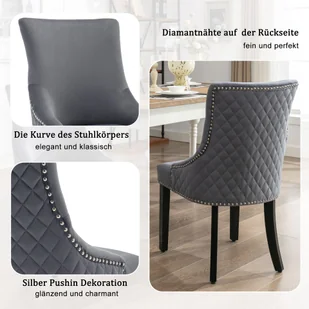 Zestaw 6 krzeseł do jadalni Flieks, krzesła kuchenne z nogami z litego drewna, tapicerowane krzesło do jadalni z oparciem, krzesło z aksamitnym obiciem, szare