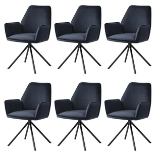 zestaw 6 krzeseł do jadalni HWC-G67, podłokietnik krzesła kuchennego, automatyczna pozycja obrotowa, aksamit MVG ~ antracytowo-niebieski, czarne nogi