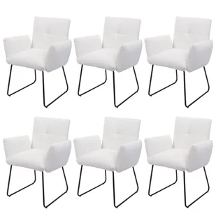 zestaw 6 krzeseł do jadalni HWC-K34, krzesło kuchenne tapicerowane podłokietnik krzesła, tkanina Oeko-Tex bouclé/tkanina metal MVG ~ biały