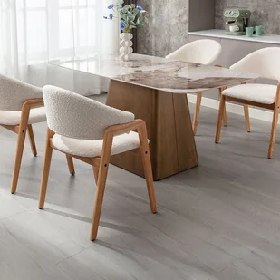 Krzesła SOLUNA to idealny wybór do minimalistycznych wnętrz z naturalnym akcentem. Wyściełane siedzisko i oparcie, buklowa tapicerka oraz solidna podstawa z drewna kauczukowego to gwarancja najwyższego komfortu i nienagannego stylu.