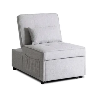 Amerykanka Fotel Rozkładany Leżanka Wypoczynkowy IBERIS Popiel to kompaktowy i praktyczny mebel 3w1, który łączy w sobie funkcję fotela, leżanki i łóżka. Dzięki intuicyjnemu mechanizmowi rozkładania w kilka sekund zmienisz go w pełnowymiarowe miejsce do spania o powierzchni 67 × 183 cm. Wystarczy pociągnąć za wygodny uchwyt, a dolna część wysunie się płynnie i bez wysiłku. Model został wykończony wytrzymałą tkaniną w eleganckim, popielatym kolorze, która jest odporna na mechacenie i przetarcia, a jednocześnie miękka i przyjemna w dotyku. Do dyspozycji masz praktyczną boczną kieszeń na książki, pilot czy telefon oraz miękką poduszkę, która podnosi komfort użytkowania.