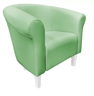 Miękki fotel wypoczynkowy wykonany z eco skóry wyposażony w drewniane bukowe nóżki w kolorze białym.