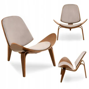 DREWNIANY FOTEL WYPOCZYNKOWY DO SALONU WELUR BEŻOWY ROLAND ORZECH