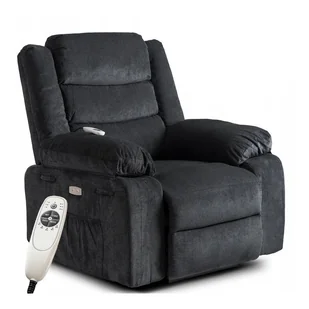 Fotel elektryczny JASPER w kolorze czarnym to połączenie elegancji, komfortu i nowoczesnej technologii. Wykonany z przyjemnej w dotyku tkaniny, wyposażony w funkcję masażu i elektryczny system rozkładania, zapewnia relaks na najwyższym poziomie. Dzięki prostemu panelowi sterowania możesz jednym przyciskiem ustawić pozycję siedzącą, półleżącą lub całkowicie rozłożoną – idealną do drzemki lub wieczornego seansu. Fotel o wymiarach 85 cm głębokości, 93 cm szerokości i 102 cm wysokości dopasuje się do każdego wnętrza, dodając mu klasy i wygody. Wbudowany system masażu z możliwością wyboru programu, intensywności i czasu działania pozwala odprężyć się po ciężkim dniu.