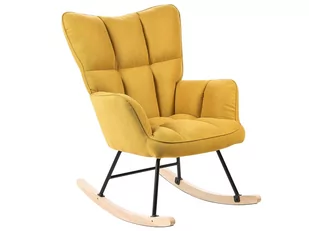 Stwórz w swoim mieszkaniu przytulną przestrzeń, w której będziesz mógł odpocząć i zrelaksować się - a wszystko to dzięki temu bujanemu fotelowi. Produkt jest tapicerowany wysokiej jakości poliestrem w żółtym kolorze, a oparcie oraz siedzisko są dodatkowo tuftowane, co podkreśla nowoczesny wygląd mebla. Całość oparta jest o drewniane płozy, które pozwolą delikatnie bujać krzesłem. To właśnie one sprawiają, że jest to świetny dodatek do salonu czy sypialni, ale i pokoju dziecięcego. Wystarczy, że usiądziesz ze swoją pociechą na krześle i wprawisz je w ruch, by zapewnić im odprężający sen.