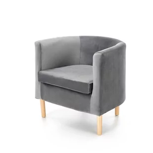 Drewniane nóżki w naturalnym kolorze zapewniają stabilność i dodają przytulności. Wygodne podłokietniki i krótkie oparcie gwarantują komfort podczas siedzenia. Występuje w czterech modnych kolorach.