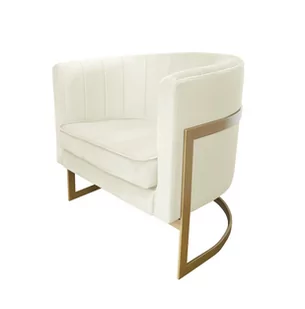 FOTEL GLAMOUR podstawa złota MG50 kremowy Usiądź wygodnie i zrelaksuj się. Nowoczesny fotel GLAMOUR zachwyca komfortem użytkowania. Klasyczny design fotela, bogata kolorystyka sprawi, że fotel wpasuje się w każde wnętrze. Tapicerka wykonana jest z miękkiego w dotyku, wysokiej jakości velvetu, który jest łatwy w pielęgnacji i trwały. Cechy produktu: