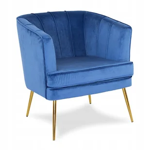 Fotel welurowy tapicerowany na metalowych złotych nogach niebieski F109