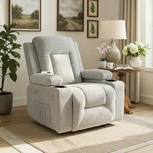 Fotel BOX to masaż, wygoda i nowoczesny wygląd w jednym. Rozkładany, z podnóżkiem, 5 programami masażu i 3 pozycjami – idealny do odpoczynku po długim dniu. Miękki sztruks, kieszeń, uchwyty na napoje i pilot – wszystko dla Twojego komfortu.