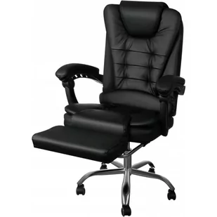 KOMFORTOWY FOTEL BIUROWY Z PODNÓŻKIEMSpecyfikacja fotelaKolor: czarnyMateriał: eko skóra, pianka EPEWymiary: na zdjęciuMaksymalne obciążenie 150 kgWaga 16 kgWymiary opakowania: 68 x 58 x 34 cm Cechy: siedzisko, wypełnione miękką podwójną gąbkąoparcie, zagłówek powleczone ekoskórąregulacja kąta odchylenia oparcia wraz z blokadapodłokietniki pokryte gąbką oraz ekoskórastabilna i wytrzymała pięcioramienna podstawawysokiej jakości kółka plastikowe REGULACJA - fotel posiada regulacje wysokości siedziska. Dzięki temu możesz dostosować jego wysokość do swoich indywidualnych potrzeb co jest niewątpliwą zaletą. Możliwość regulacji odchylenia fotela, (90 -155 stopni) gwarantuje Ci chwilę relaksu i rozluźnienia.Pokrycie - szerokie siedzisko, oparcie, zagłówek oraz wierzchnia strona podłokietników powleczone wysokiej jakości ekoskóra, oraz zastosowanie pianki EPE.