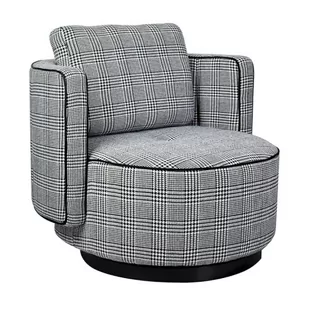 Fotel obrotowy TONDO pepitka biało-czarna. Nowoczesny, wielofunkcyjny fotel, który wzbogaci Twoje wnętrze. Siedzisko oraz poduszka obszyte jest piękną tkaniną w biało-czarną pepitkę. Obrotowa podstawa wykonana jest ze stali nierdzewnej w czarnym kolorze. Poza unikatowym designem jest to fotel niezwykle komfortowy.