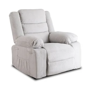 Fotel wypoczynkowy ARTURO to elegancki i funkcjonalny mebel, idealny do relaksu w salonie. Wykonany z trwałej, miękkiej tkaniny sztruksowej, oferuje trzy pozycje rozłożenia: siedzącą, półsiedzącą i leżącą. Dzięki temu można go dostosować do różnych potrzeb, od czytania książki po popołudniową drzemkę. Fotel posiada boczną kieszeń na drobiazgi, co zwiększa jego praktyczność.