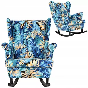 Fotel uszak bujany print turkusy salon sypialnia
