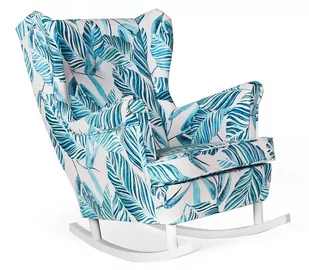 Fotel Uszak ARI w stylu skandynawskim na płozach. Fotel, którego dotyczy aukcja, wykonany został w tkaninie M 114 - motyw liści w odcieniach turkusu na jasny...