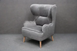 Fotel uszak "MOLI" Materiał - Welur/aksamit - Kronos 15 Odcienie popielatego Drewniane jasne nogi Możliwość zamówienia w innym obiciu Próbki materiałów dostępne we wszystkich naszych sklepach stacjonarnych Zdjęcia przykładowe