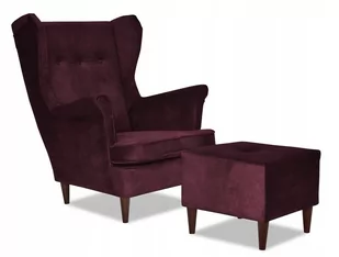 Fotel Uszak ARI w stylu skandynawskim. Fotel, którego dotyczy aukcja, wykonany został w tkaninie AURA 06 - ciemnofioletowy, wrzos. Oparcie tego modelu standa...