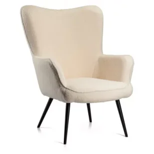 Fotel uszak ROKER, tapicerowany tkaniną teddy, zwaną także barankiem, to połączenie nowoczesnego designu i wyjątkowego komfortu. Jego miękka, puszysta tekstura zapewnia przyjemność użytkowania oraz nadaje wnętrzu przytulności. Jasny kolor fotela wprowadza do pomieszczenia lekkość i optycznie je rozjaśnia, idealnie komponując się zarówno z minimalistycznymi, jak i bardziej klasycznymi aranżacjami. Ergonomiczne oparcie i szerokie podłokietniki gwarantują pełen komfort wypoczynku, podczas gdy smukłe, metalowe nogi w kolorze czarnym dodają meblowi elegancji i stabilności. Fotel ROKER to doskonały wybór dla osób ceniących wygodę, nowoczesny wygląd i jakość.