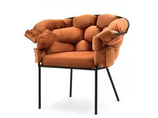cechy podłokietniki - tak, podstawa 4 - nogi, siedzisko wypełnione formatką z pianki Kolorystyka kolor podstawy: czarny kolor siedziska: miedziany przeznaczenie salon, biuro, lokal usługowy styl wnętrzarski nowoczesny, glamour, współczesny Wymiary i waga długość: 61 cm szerokość: 83 cm wysokość: