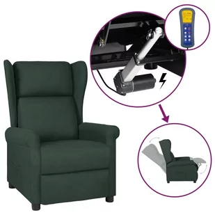 vidaXL Fotel skrzydłowy z funkcją rozkładania elektryczny ciemnozielony materiał