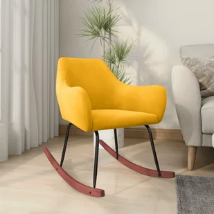 Żółty tapicerowany fotel bujany w stylu uszak S9-P04