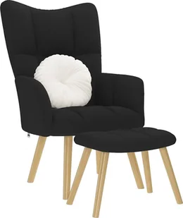 vidaXL Fotel z podnóżkiem, czarny, obity tkaniną