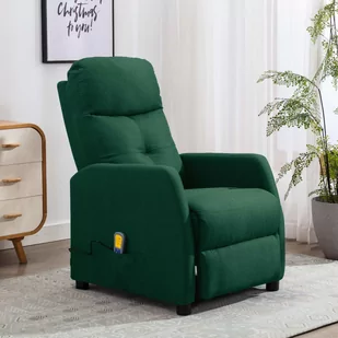 Rozkładany fotel masujący wykonano z tkaniny i żelaznej ramy oraz wypełniono gąbką i bawełną PP, dzięki czemu jest stabilny i miękki do siedzenia. Ma 6 punktów masażu: dla głowy, karku, pleców i nóg, które emitują relaksujące wibracje. Dołączone złącze USB pozwala na wybór różnych programów masażu. Jedno naciśnięcie guzika umożliwia również podgrzanie siedziska dla większego odprężenia. Oparcie można odchylać do tyłu, a podnóżek podnosić do góry. Ta pozycja pozwala wygodnie się położyć. Elektryczny fotel masujący jest również wyposażony w kieszeń boczną na pilota.