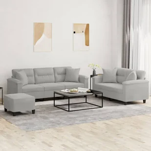 Wytrzymała mikrofibra: mikrofibra to syntetyczna tkanina, składająca się z bardzo cienkich włókien, która jest szczególnie odporna na zabrudzenia. Ponieważ jest trwała i łatwa do utrzymania w czystości, stanowi świetny wybór w kwestii pokryć meblowych. Solidna i stabilna rama: rama ze sklejki i metalu zapewnia solidność i stabilność sofy. Wygodne siedzisko: sofa jest niezwykle wygodna dzięki grubo wyściełanemu siedzisku, podłokietnikom i poduszkom pod plecy. Praktyczne poduszki na kanapę: kwadratowe poduszki ozdobne nie tylko upiększą wystrój, ale także zapewnią większy komfort siedzenia i leżenia. Uniwersalny podnóżek: podnóżek jest odpowiedni do położenia stóp, gdy leżysz na sofie, a także oferuje dodatkowe miejsce do siedzenia. Ponadto prosta konstrukcja i kompaktowe rozmiary sprawiają, że jest to idealny mebel do niemal wszystkich przestrzeni mieszkalnych.