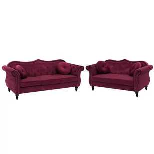 Stylowa i elegancka 5-osobowa sofa w kolorze burgundowej czerwieni. Prezentowana tutaj 5-osobowa sofa to prawdziwa atrakcja. Dzięki swojemu eleganckiemu i klasycznemu wyglądowi z pewnością przyciągnie uwagę wszystkich gości. Tradycyjny design został zainspirowany stylem retro, który w połączeniu z pikowanym obiciem i srebrnymi ćwiekami pasuje do każdego nowoczesnego wnętrza. Cztery piękne poduszki dekoracyjne dopełniają całości stylizacji, a także zapewniają wysoki poziom komfortu siedzenia.