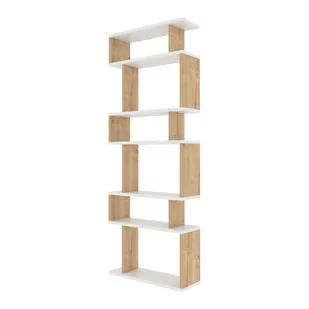 Hanah Home Stylowa półka na książki, biała i dębowa, 60 x 19,6 x 160 cm, 100% pokryta melaminą, grubość 18 mm, wzornictwo z półkami numerycznymi
