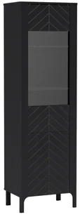 Subtelny wzór w jodełkę na frontach nadaje jej oryginalnego charakteru i wprowadza do wnętrza nutę elegancji, nie przytłaczając przy tym przestrzeni. Czarna kolorystyka doskonale komponuje się z nowoczesnymi aranżacjami, podkreślając ich minimalistyczny, a zarazem przytulny klimat. Pojemne półki umożliwiają zarówno praktyczne przechowywanie, jak i stylową ekspozycję ulubionych książek, ceramiki, szkła czy dekoracji. To mebel, który łączy estetykę z użytecznością – i robi to doskonale. Regał Serindo – elegancja i porządek w jednym: