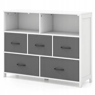 Komoda COSTWAY z 5 szufladami, szafka do przechowywania z otwartymi półkami i składanymi szufladami z tkaniny, drewniana szafka z szufladami do salonu, sypialni, przedpokoju