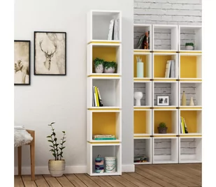 Regał na książki z pięcioma półkami. Dzięki prostemu, nowoczesnemu stylowi pasuje do każdego domu. Wykonany z laminowanej płyty wiórowej i metalu. Wymiary półek: 28,5 x 32 x 22 cm.