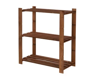 3 Nośność: 40 kg Materiał: Drewno sosnowe Kolor: Brązowy Wykończenie: Olejowany Prosty regał z trzema półkami, wykonany z drewna. Mebel z rozbudowanej serii B, obejmującej regały, ławy i skrzynie.