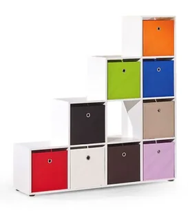 W ofercie posiadamy także dopasowane do rozmiarów regału kolorowe pojemniki widoczne na poniższym zdjęciu. Akcesoria te świetnie nadają się do przechowywania dokumentów, płyt, książek ale także mniejszych elementów garderoby lub zabawek.
