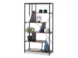 cechy z półkami otwartymi Kolorystyka kolor korpusu - stelaża: czarny kolor półek: orzechowy przeznaczenie biuro, lokal usługowy, pokój dziecka, pracowania w domu styl wnętrzarski nowoczesny, współczesny, industrialny Wymiary i waga długość: 35 cm szerokość: 84 cm wysokość: