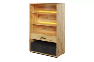 Szukasz praktycznego i stylowego regału do pokoju nastolatka? Prezentujemy Ci regał z szufladami z kolekcji CAGO, który z pewnością spełni Twoje oczekiwania! Regał ma rozmiar 90x138x42 cm i został wykonany z trwałej płyty wiórowej. Dzięki temu jest on solidny i wytrzymały na długie lata użytkowania. Kolorystyka dąb artisan/czarny nadaje mu nowoczesnego i eleganckiego wyglądu, który idealnie pasuje do wystroju pokoju nastolatka. Regał z szufladami to doskonałe rozwiązanie dla osób, które cenią sobie porządek i wygodę. Wysokiej jakości szuflady zapewniają dużo miejsca na przechowywanie różnych przedmiotów, od ubrań po książki i akcesoria.