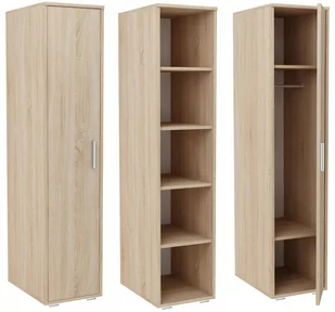 SZAFA JEDNODRZWIOWA BODO 1D4P Szafa BODO 1D4P wykonana jest z bardzo dobrej jakości płyty laminowanej o grubości 16mm, którą cechuje zwiększona odporność na zarysowania oraz odporność na ścieranie i wilgoć (możliwość ścierania wilgotną gąbką). SZAFA JEST UNIWERSALNA 2W1. W KOMPLECIE SĄ 4 PÓŁKI I DRĄŻEK. W zależności od potrzeby można wykorzystać albo same 4 półki, albo 2 półki i 1 drążek. W wersji I szafa będzie podzielona na 5 przestrzeni na których możemy położyć ubrania.