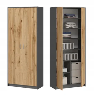 Meble w wybarwieniu Antracyt i Dąb Wotan cechuje minimalizm .
