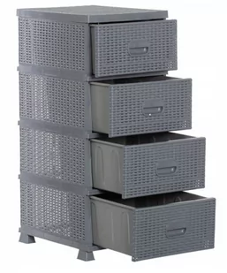 Lekka i praktyczna szafka do łazienki z 4 szufladami, która pozwoli uporządkować wszystkie toaletowe przybory. Komoda wykonana jest z tworzywa imitującego rattan, jest elegancka i trwała zwłaszcza w pomieszczeniach o dużej wilgotności Informacje o produkcie: Wymiary: 37x44x90 cm Idealna do kuchni, łazienki, przedpokoju Niezwykle pojemna Stabilne nóżki Modny wzór RATTAN Kolor: szary Solidne wykonanie Łatwy montaż, bez narzędzi Instrukcja składania dołączona do produktu zobacz inne modele Cała oferta asortymentu ogrodowego dostępna jest także w
