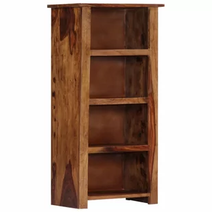 Regał został wykonany z litego drewna sheesham, znanego również jako drzewo różane lub palisander, które jest tropikalnym, twardym drewnem, które słynie z naturalnego usłojenia i gładkiej tekstury. Dodatkowo, nie odkształca się ani nie rozwarstwia i cechuje się naturalną odpornością na butwienie. Półki zapewniają dużo miejsca do przechowywania ulubionych książek lub innych lubianych przedmiotów w uporządkowanych i ładnie wyeksponowanych. Każdy etap procesu produkcji jest wykonywany z największą starannością, czy to polerowanie, czy lakierowanie. Ten produkt jest już złożony; nie jest wymagany montaż.