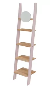 Minimalistyczny i solidnie wykonany - regał typu drabina, ze zdejmowalnym lusterkiem. Regał przypominający drabinę, niestety nie do wspinania : ) Jeżeli zastanawiasz się jak wygospodarować dodatkowe miejsce do przechowywania w małej sypialni czy łazience, regał ASHME, to mebel który może Ci w tym pomóc. Drabinka sama w sobie zajmuję bardzo mało miejsca, jednocześnie dając mnóstowo miejsca do przechowywania na 5 półkach-szczebelkach. Możesz na nich poukładać ramki ze zdjęciami, kosmetyki czy kwiaty.