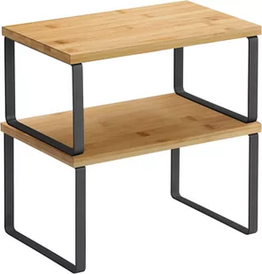 Czy zawsze brakuje Ci miejsca w kuchni? Nie wiesz gdzie trzymać swoje słoiczki z przyprawami czy produkty w puszkach? Zestaw 2 stojaków na przyprawy jest rozwiązaniem Twojego problemu! Zapewni dodatkową przestrzeń magazynową i uporządkuje Twoją kuchnię. Ożyw i uatrakcyjnij swoją kuchnię tym stylowym zestawem półek kuchennych wykonanych z naturalnego bambusa i wytrzymałego metalu. Te wytrzymałe półki mogą udźwignąć do 15 kg i idealnie nadają się do przechowywania naczyń, szklanek lub pojemników na przyprawy. Możesz je ustawiać jedna na drugiej, wsuwać jedną pod drugą, oddzielić lub ułożyć w kształcie litery „L”, zgodnie z Twoimi potrzebami. Zestaw zawiera 2 solidne półki kuchenne, które są łatwe w montażu.