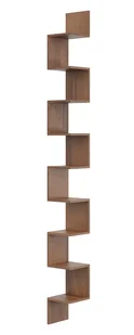 Materiał: Wysokogatunkowa płyta meblowa odporna na zarysowania oraz uszkodzenia mechaniczne. Obrzeża wzmocnione odpornym na uszkodzenia mechaniczne tworzywem PCV. Kolor: orzech. W naszej ofercie posiadamy także inne półki narożne. Kliknij i stwórz swój wyjątkowy zestaw mebli. W zestawie z regałem znajdują się niezbędne do przytwierdzenia do ściany kątowniki oraz narzędzia do montażu.